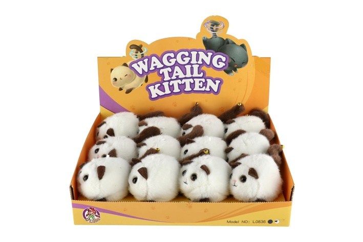 Natáhněte provázek umístěný na kočičce, po natažení se kočičce točí ocásek. Na konci ocásku má malou rolničku.