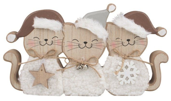 Kočky v hnědých čepicích, dřevěné na postavení, 25 x 14 x 2,5 cm Roztomilé dřevěné kočky v hnědých zimních čepicích jsou milou dekorací, která vnese do vašeho domova hravost a přírodní kouzlo. Díky jemnému zpracování a decentní barevnosti působí vkusně a útulně – ideální pro zimní i sváteční období. Využití: Skvěle se hodí na poličku, parapet, komodu nebo jako součást zimního aranžmá. Díky plochému provedení a stabilní základně dobře drží na rovném povrchu a snadno se kombinují s dalšími dřevěnými dekoracemi. Vlastnosti: rozměry: 25 x 14 x 2,5 cmmateriál: dřevovhodné na postaveníTyto dřevěné kočky potěší každého milovníka zvířat a přirozeného stylu – zútulní váš domov během celého zimního období.