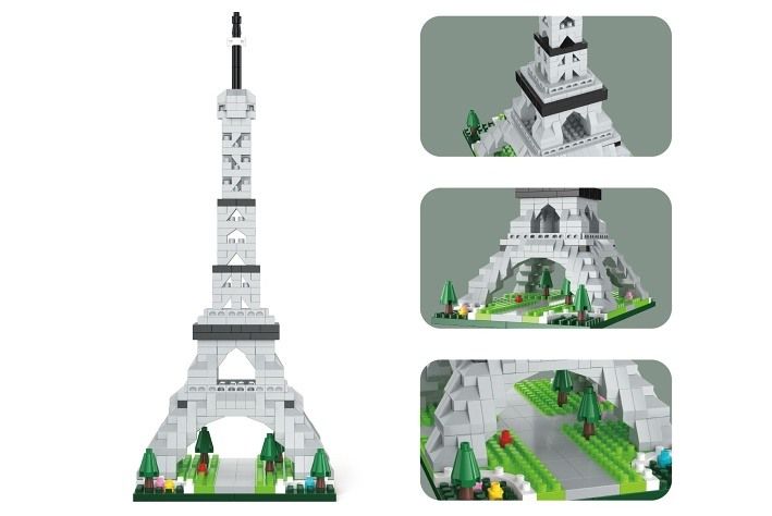 KOCO Stavebnice Eiffelova věž 538 dílků. Rozměry 12x8x21 cm. Součástí 2 figurky. Obrázkový návod na sestavení součástí.