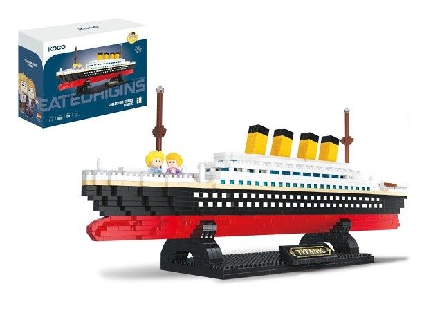 KOCO Stavebnice Titanic 1510 dílků. Rozměry 35x8x14,5 cm. Součástí 2 figurky, stojánek. Obrázkový návod na sestavení součástí.