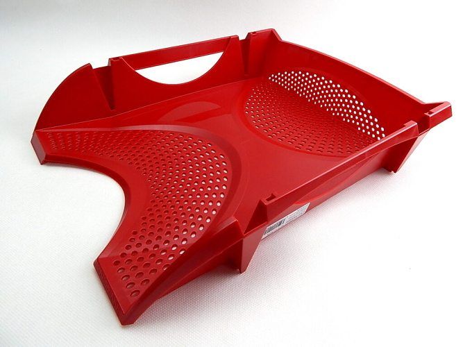 Kancelářský box vyrobený z červeného plnobarevného polystyrenu. Jedná se o plochou zásuvku, která je určena pro ukládání listů papíru, dokumentů a složek do velikosti A4 ve vodorovné poloze na pracovním stole. Boxy vynikají svou variabilitou. Jejich konstrukce umožňuje stohování a aretaci jednotlivých boxů nad sebe do snadno znovurozebíratelných celků. Jsou určeny k použití hlavně v kanceláři. Kancelářské boxy jsou bez spotřebitelského obalu.