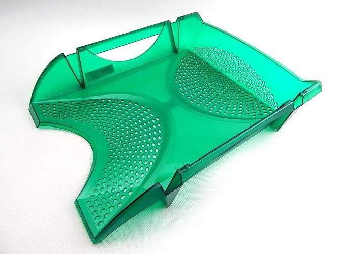 Kancelářský box vyrobený ze zeleného průhledného polystyrenu. Jedná se o plochou zásuvku, která je určena pro ukládání listů papíru, dokumentů a složek do velikosti A4 ve vodorovné poloze na pracovním stole. Boxy vynikají svou variabilitou. Jejich konstrukce umožňuje stohování a aretaci jednotlivých boxů nad sebe do snadno znovurozebíratelných celků. Jsou určeny k použití hlavně v kanceláři. Kancelářské boxy jsou bez spotřebitelského obalu.