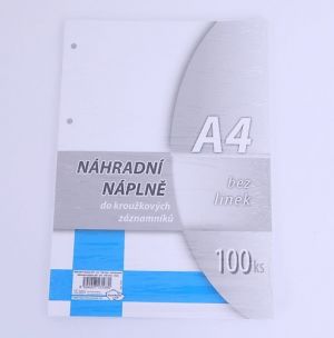 Náhradní vložka do kroužkových záznamníků A4 100listů bez linek