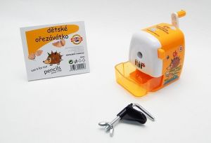 Výrobek se používá na hrocení tužek (pastelových i grafitových) o průměru do 11,6 mm. Stolní plastové ořezávátko na kličku - pro běžné tenké i JUMBO tužky (pastelové a grafitové). Toto ořezávátko má nastavitelný držák na tužky s možností nastavení typu hrocení dle ukazatele v rozmezí 0,06 – 2 mm. Součástí balení je upevňovací mechanismus na pracovní desku. Plastové ořezávátko v bílo-žlutém provedení s vlastní designem. Ve spotřebitelském balení je vložen leták s návodem pro použití. Délka 114 mm, šířka 76 mm, výška 96 mm.