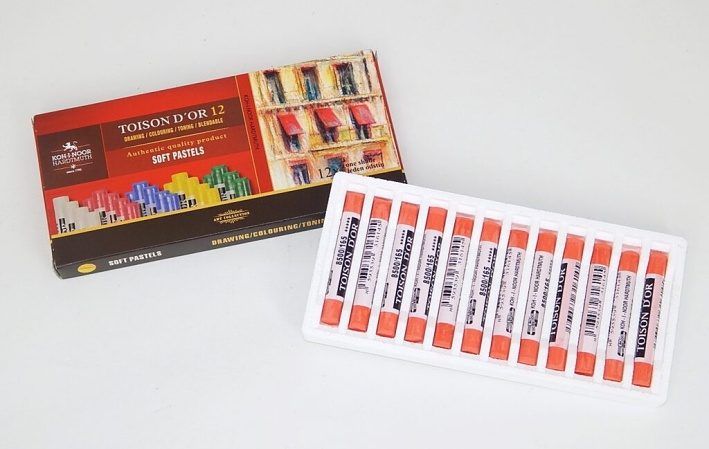 Umělecké prašné pastely s ovinem, o průměru 10 mm a délce 75 mm. Jsou naší nejširší odstínovou řadou. Mají vynikající psací vlastnosti i světlostálost. Při kreslení je možné použít držák na pastely KOH-I-NOOR Versatil. Kresbu doporučujeme po dokončení stabilizovat fixativem.