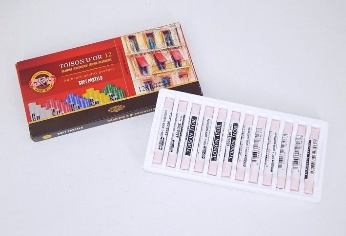 Umělecké prašné pastely s ovinem, o průměru 10 mm a délce 75 mm. Jsou naší nejširší odstínovou řadou. Mají vynikající psací vlastnosti i světlostálost. Při kreslení je možné použít držák na pastely KOH-I-NOOR Versatil. Kresbu doporučujeme po dokončení stabilizovat fixativem.