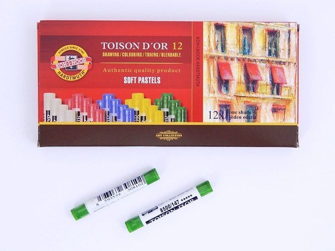 Umělecké prašné pastely s ovinem, o průměru 10 mm a délce 75 mm. Jsou naší nejširší odstínovou řadou. Mají vynikající psací vlastnosti i světlostálost. Při kreslení je možné použít držák na pastely KOH-I-NOOR Versatil. Kresbu doporučujeme po dokončení stabilizovat fixativem.