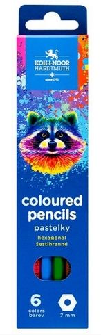 KOH-I-NOOR Pastelky šestihranné - dlouhé - 6 barev - mýval - 3551/6