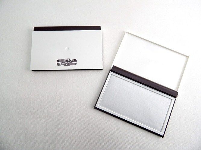 Poduška razítková č.1. Velká nenapuštěná razítková poduška vyrobená z polystyrenu v hnědo-bílé kombinaci. Hnědý spodek a bílé víko. Maximální rozměr razítka 158 x 80 mm. Po napuštění razítkovací barvou je určena k namáčení razítek za účelem zhotovení jejich otisku. Určena pro kancelář a hobby.
