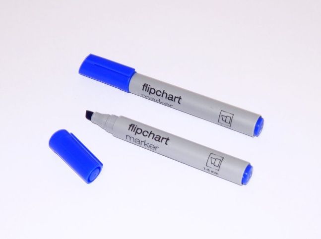 Značkovače jsou plněné inkousty na vodní bázi, odstín červený, modrý, zelený a černý. Jsou určeny pro psaní na flipchartové tabule a jsou vhodné i pro různé druhy papíru. Klínovými hroty o průměru 5 mm a je možné psát šířkou stopy písma 1 - 5 mm, délka 350 m. Všechny použité materiály zajišťují životnost minimálně 3 roky a splňují požadavky normy EN – 71. Baleny jsou v papírových krabičkách po 10 ks od jednoho odstínu a ve 4 ks v plastových krabičkách.