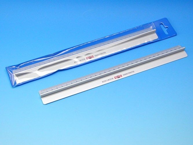 Pravítko vhodné pro rýsování rovných čar. Pravítko 30 cm s úchytem v plastovém obalu. Hliníkové pravítko s úchytem. Stupnice tištěná na spodní straně zkosené hrany. Matný hliník. Rozměr 310 x 38 mm.