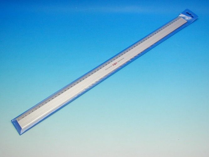 Pravítko vhodné pro rýsování rovných čar. Pravítko 80 cm s s řezací úpravou v plastovém obalu. Hliníkové pravítko s řezací úpravou. Stupnice tištěná na horní straně zkosené hrany. Matný hliník. Rozměr 810 x 37 x 4 mm.