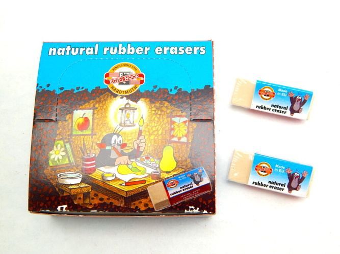 Pryž měkká 6891 30 Krtek. Stěrací měkká pryž s potiskem , vyrobená na přírodní bázi bez přidavků plastů a ftalátů. Pryž vhodná pro stírání grafitových čar v rozmezí tvrdostí 3B-3H.