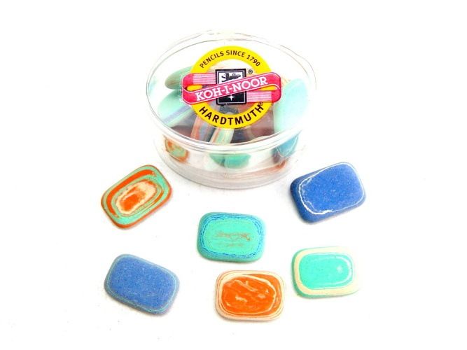 Pryž kancelářská 6510 50. Kancelářská oblázková stěrací pryž vyrobená na přírodní bázi bez přídavků plastů a ftalátů. Balení obsahuje různé druhy pryže vhodné ke stírání grafitových a pastelových čar, skvrn inkoustu a tuše. Pryž je vhodná také pro stírání písma psacích strojů a snímacích tuh.