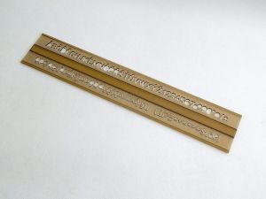 Písmenková šablona vyrobená z kouřového průhledného polystyrenu. Je určena pro práci s ohrocenou tužkou nebo mikrotužkou. Obsahuje znaky velké a malé abecedy, číslic, matematických znaků a řecké abecedy. Veškeré znaky jsou velikosti 7 mm. Šablona je určena k popisování hlavně ve škole, ale i v kanceláři. Zabalena je do polyetylenového celotransparentního sáčku, na kterém je nalepen samolepící štítek s identifikačními údaji.