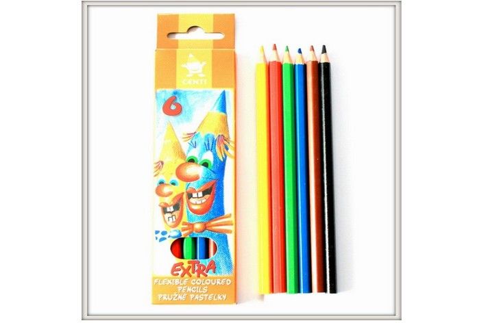 Souprava 6 ks pružných pastelek v základní paletě barev - žlutá, červená, zelená, modrá, hnědá a černá.