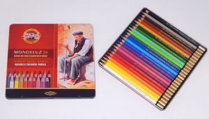 Souprava 24 ks AKVARELOVÝCH pastelek v plechové krabičce. Pastelky jsou šestihranné OK - 7 mm s kvalitním silně pigmentovaným jádrem o průměru 3,8 mm. Tužky mají špičkovou povrchovou úpravu, máčený knoflík a zlaté značení. Vyznačují se sytou barevnou stopou s možností kresbu dále upravovat rozmýváním pomocí štětce, případně houbičky. Jsou vhodné pro umělecké a hobby kreslení.
