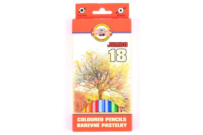 Šestihranné pastelové tužky OK-10 mm v dřevěném plášti, s tuhou o průměru 5,6 mm. Silný profil tužky je vhodný pro držení a vedení tužky. Balené po 18 ks mix barev do kartonové krabičky. Jsou vhodné jak pro školní použití, tak i umělecké kreslení. Mají sytou barevnou stopu.