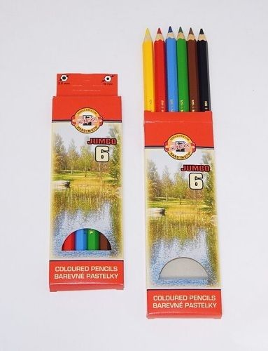 Šestihranné pastelové tužky OK-10 mm v dřevěném plášti, s tuhou O 5,6 mm. Silný profil tužky je vhodný pro držení a vedení tužky. Balené po 6 ks mix barev do kartonové krabičky. Jsou vhodné jak pro školní použití, tak i umělecké kreslení. Mají sytou barevnou stopu.
