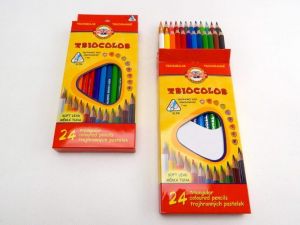 Trojhranné pastelové tužky v dřevěném plášti. 24 barev baleno do kartonové krabičky. Ergonomický trojhranný tvar umožňuje optimální držení a vedení tužky. Jsou určeny jak pro školáky tak i děti předškolního věku. Tyto tužky získávají stále větší oblibu.