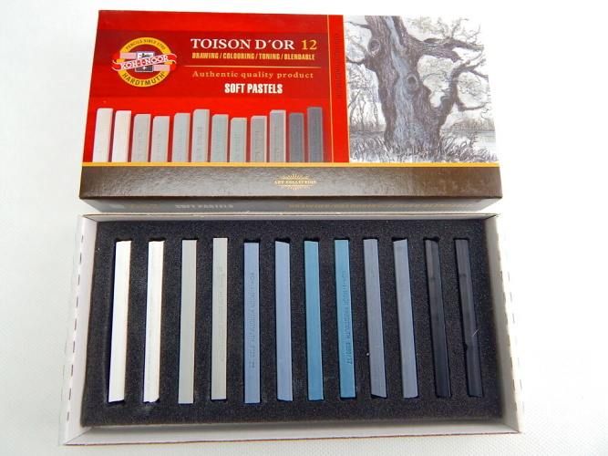 Speciální 12 ks souprava šedých odstínů uměleckých pastelů s pevnější strukturou, čtvercového profilu 7 x 7 mm a délky 75 mm. Jsou vhodné pro tenčí a obrysové linie a především pro černobílou kresbu.