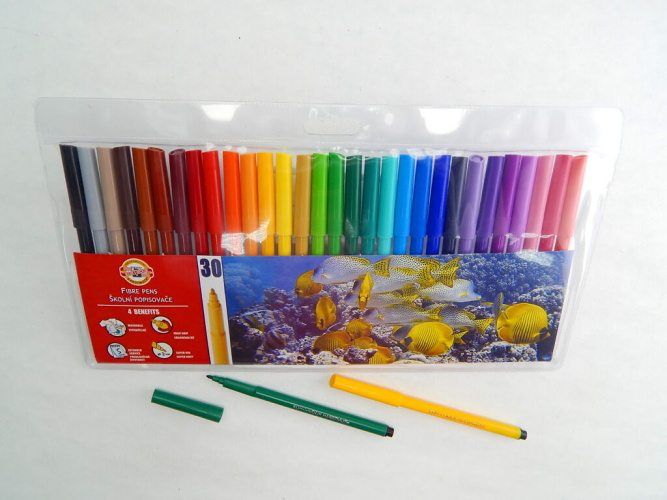 Souprava popisovačů 1002 30ks - fixy. Školní popisovače s trojhranným ergonomickým úchopem a bezpečnostním chránítkem,které umožňuje dýchání i v případě spolknutí. Jsou plněné pestrými vypratelnými inkousty a vyrobeny z materiálů zajišťující odolnost proti vyschnutí minimálně 5 let. Hroty odolné proti zatlačení umožňují psát a malovat stopou šířky 1 – 2 mm, délka 600 m.Všechny použité materiály splňují požadavky normy EN – 71.Baleny jsou do souprav 4,6,10,12,18,20,24,30 ks v PP pouzdrech nebo papírových krabičkách. Vyrobeno v EU.