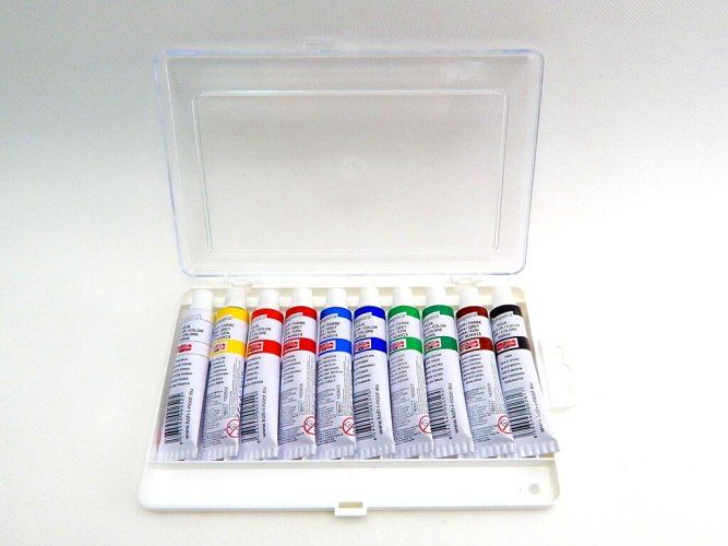 Souprava temperových barev 10. Barvy určené především pro výuku výtvarné výchovy ve školách, ale používají je i profesionální výtvarníci. Jsou vysoce kvalitní, husté, vzájemně se mísitelné, vodou ředitelné, jsou bezpečné a spolehlivě vypratelné. Barvy velmi rychle zasychají a po zaschnutí je lze znovu rozmít vodou. Základem jsou jemně utřené pigmenty rozmíchané do emulze vhodného oleje. Vyráběny v 33 odstínech a v mnoha druzích balení.