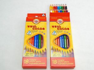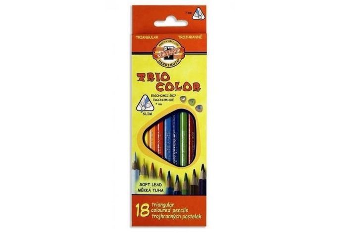 Trojhranné pastelové tužky v dřevěném plášti. 18 barev baleno do kartonové krabičky. Ergonomický trojhranný tvar umožňuje optimální držení a vedení tužky. Jsou určeny jak pro školáky tak i děti předškolního věku. Tyto tužky získávají stále větší oblibu.