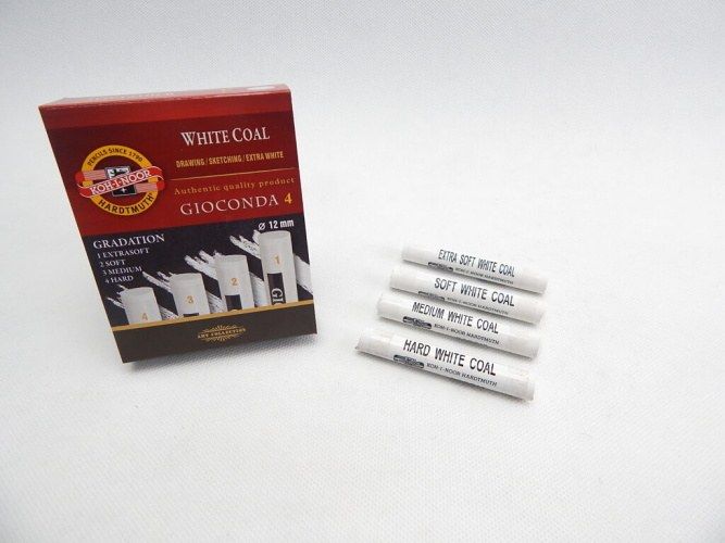 Souprava 4 ks umělých bílých extra uhlů o průměru 12 mm a délce 75 mm. Balené po 4 ks (MIX gradací) 1, 2, 3, 4. Jsou vhodné především pro kresbu na tmavé podklady. Nejlepší výsledky jsou při kresbě na černý papír.