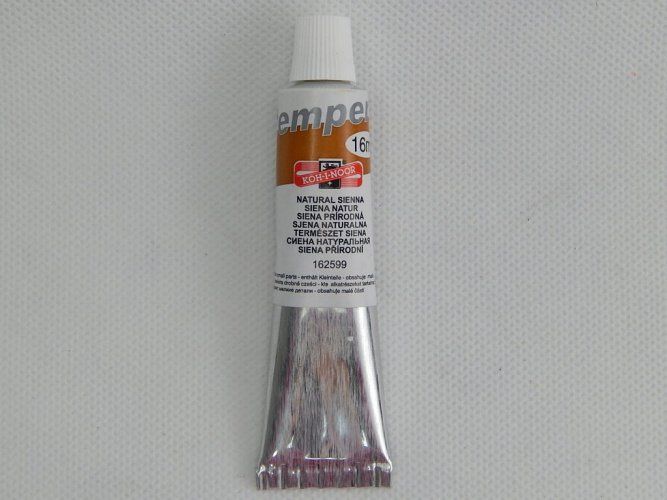 Barva temperová 16ml siena přírodní. Barvy určené především pro výuku výtvarné výchovy ve školách, ale používají je i profesionální výtvarníci. Jsou vysoce kvalitní, husté, vzájemně se mísitelné, vodou ředitelné, jsou bezpečné a spolehlivě vypratelné. Barvy velmi rychle zasychají a po zaschnutí je lze znovu rozmít vodou. Základem jsou jemně utřené pigmenty rozmíchané do emulze vhodného oleje. Vyráběny v 33 odstínech a v mnoha druzích balení.