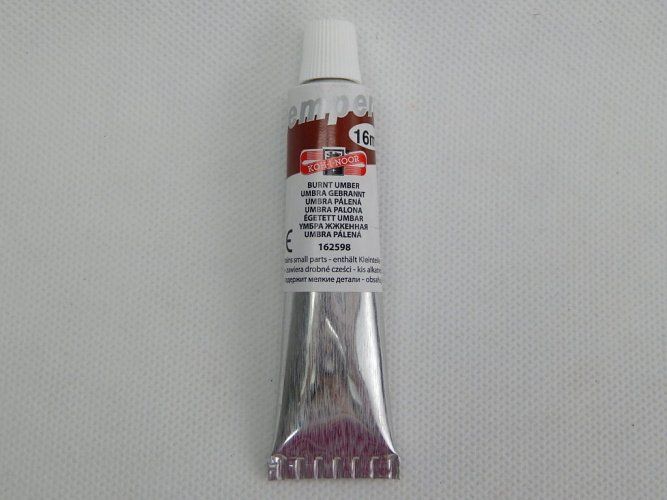 Barva temperová 16ml umbra pálená. Barvy určené především pro výuku výtvarné výchovy ve školách, ale používají je i profesionální výtvarníci. Jsou vysoce kvalitní, husté, vzájemně se mísitelné, vodou ředitelné, jsou bezpečné a spolehlivě vypratelné. Barvy velmi rychle zasychají a po zaschnutí je lze znovu rozmít vodou. Základem jsou jemně utřené pigmenty rozmíchané do emulze vhodného oleje. Vyráběny v 33 odstínech a v mnoha druzích balení.