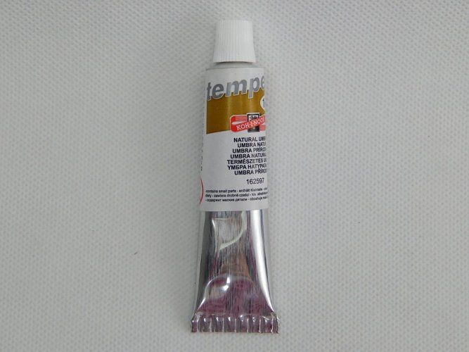 Barva temperová 16ml umbra přírodní. Barvy určené především pro výuku výtvarné výchovy ve školách, ale používají je i profesionální výtvarníci. Jsou vysoce kvalitní, husté, vzájemně se mísitelné, vodou ředitelné, jsou bezpečné a spolehlivě vypratelné. Barvy velmi rychle zasychají a po zaschnutí je lze znovu rozmít vodou. Základem jsou jemně utřené pigmenty rizmíchané do emulze vhodného oleje. Vyráběny v 33 odstínech a v mnoha druzích balení.