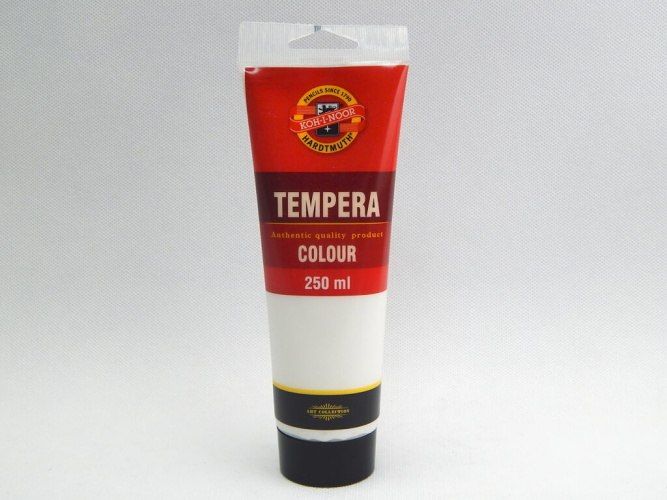 Barva temperová 250ml běloba titanová. Umělěcké temperové barvy určené především pro profesionální výtvarníky, ale používají se při výuce výtvarné výchovy ve školách. Jsou vysoce kvalitní, husté, vzájemně se mísitelné, vodou ředitelné, jsou bezpečné a spolehlivě vypratelné. Jejich kvalitativní parametry, týkající se kryvosti, světlostálosti a složení jsou vždy uvedeny na etiketě. Barvy velmi rychle zasychají a po zaschnutí je lze znovu rozmít vodou. Základem jsou jemně utřené pigmenty rozmíchané do emulze vhodného oleje. Vyráběny v 33 odstínech.