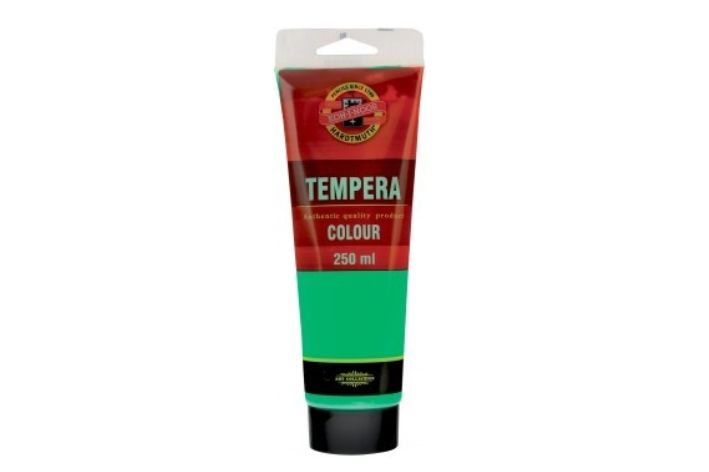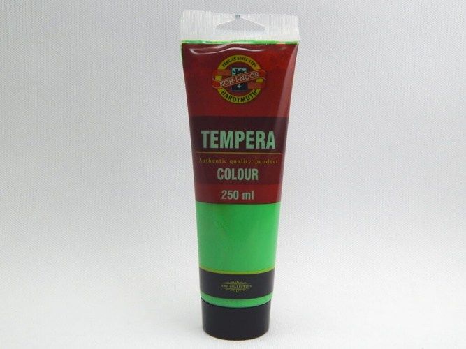 Barva temperová 250ml zeleň světlá. Umělěcké temperové barvy určené především pro profesionální výtvarníky, ale používají se při výuce výtvarné výchovy ve školách. Jsou vysoce kvalitní, husté, vzájemně se mísitelné, vodou ředitelné, jsou bezpečné a spolehlivě vypratelné. Jejich kvalitativní parametry, týkající se kryvosti, světlostálosti a složení jsou vždy uvedeny na etiketě. Barvy velmi rychle zasychají a po zaschnutí je lze znovu rozmít vodou. Základem jsou jemně utřené pigmenty rozmíchané do emulze vhodného oleje. Vyráběny v 33 odstínech.