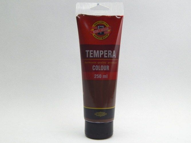 Barva temperová 250ml umbra pálená. Umělěcké temperové barvy určené především pro profesionální výtvarníky, ale používají se při výuce výtvarné výchovy ve školách. Jsou vysoce kvalitní, husté, vzájemně se mísitelné, vodou ředitelné, jsou bezpečné a spolehlivě vypratelné. Jejich kvalitativní parametry, týkající se kryvosti, světlostálosti a složení jsou vždy uvedeny na etiketě. Barvy velmi rychle zasychají a po zaschnutí je lze znovu rozmít vodou. Základem jsou jemně utřené pigmenty rozmíchané do emulze vhodného oleje. Vyráběny v 33 odstínech.