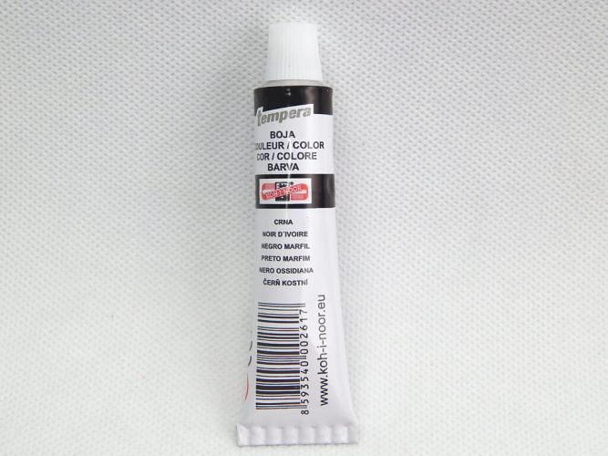 Barva temperová 16ml čerň kostní. Barvy určené především pro výuku výtvarné výchovy ve školách, ale používají je i profesionální výtvarníci. Jsou vysoce kvalitní, husté, vzájemně se mísitelné, vodou ředitelné, jsou bezpečné a spolehlivě vypratelné. Barvy velmi rychle zasychají a po zaschnutí je lze znovu rozmít vodou. Základem jsou jemně utřené pigmenty rozmíchané do emulze vhodného oleje. Vyráběny v 33 odstínech a v mnoha druzích balení.