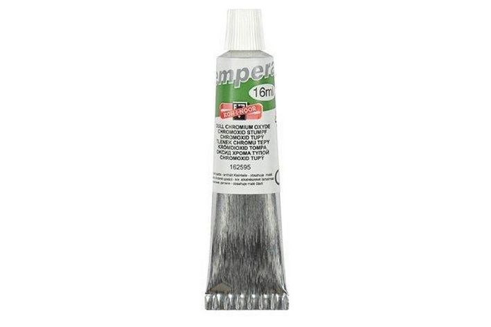 Barva temperová 16ml chromoxid tupý. Barvy určené především pro výuku výtvarné výchovy ve školách, ale používají je i profesionální výtvarníci. Jsou vysoce kvalitní, husté, vzájemně se mísitelné, vodou ředitelné, jsou bezpečné a spolehlivě vypratelné. Barvy velmi rychle zasychají a po zaschnutí je lze znovu rozmít vodou. Základem jsou jemně utřené pigmenty rozmíchané do emulze vhodného oleje. Vyráběny v 33 odstínech a v mnoha druzích balení.