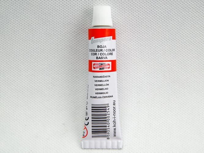 Barva temperová 16ml rumělka červená. Barvy určené především pro výuku výtvarné výchovy ve školách, ale používají je i profesionální výtvarníci. Jsou vysoce kvalitní, husté, vzájemně se mísitelné, vodou ředitelné, jsou bezpečné a spolehlivě vypratelné. Barvy velmi rychle zasychají a po zaschnutí je lze znovu rozmít vodou. Základem jsou jemně utřené pigmenty rizmíchané do emulze vhodného oleje. Vyráběny v 33 odstínech a v mnoha druzích balení.