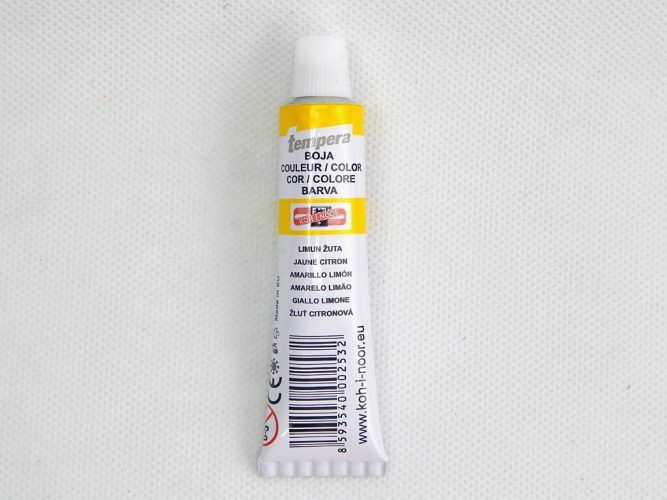 Barva temperová 16ml žluť citrónová. Barvy určené především pro výuku výtvarné výchovy ve školách, ale používají je i profesionální výtvarníci. Jsou vysoce kvalitní, husté, vzájemně se mísitelné, vodou ředitelné, jsou bezpečné a spolehlivě vypratelné. Barvy velmi rychle zasychají a po zaschnutí je lze znovu rozmít vodou. Základem jsou jemně utřené pigmenty rozmíchané do emulze vhodného oleje. Vyráběny v 33 odstínech a v mnoha druzích balení.