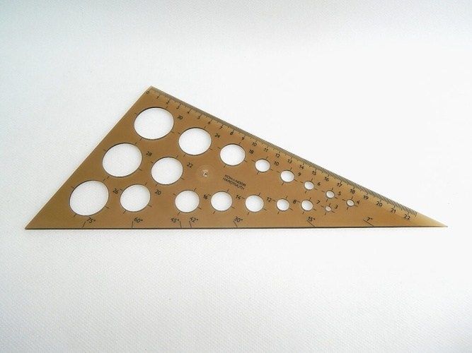 Trojúhelník 60/250 745920 kouřový. Trojúhelník 60/250+Z18 vyrobený z kouřového průhledného polystyrenu. Stupnice a označení průměrů a os kružnic jsou tištěny technologií přesného sítotisku. Tisk je odolný proti opotřebení při běžném používání. Přesnost délkové stupnice 0,2% délky. V ploše trojúhelníku jsou kruhové otvory sloužící ke kreslení kružnic o průměrech 3 ,4, 5, 6, 7, 8, 9, 10, 12, 14, 16, 18, 20, 22, 24, 26, 28 a30 mm. Trojúhelník je určený k technickému kreslení a rýsování ve škole i v kanceláři. Výhodou je spojení trojúhelníku 60/250 a kružnicové šablony v jeden výrobek. Zabalen je do polyetylenového sáčku s eurozávěsem.