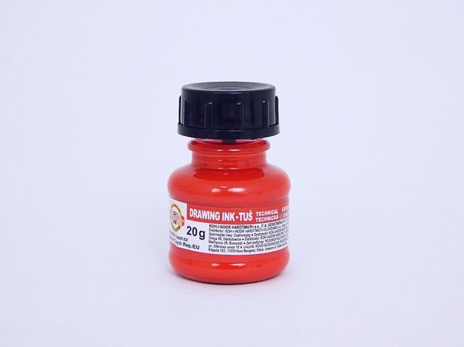 Tuš je určena zejména k hobby malování, jedná se o technickou tuš. Výrobek je vhodný ke kreslení na pauzovacím a rýsovacím papíře. Tuš není vhodná pro použití do technických per. Nabízíme v červené variantě.