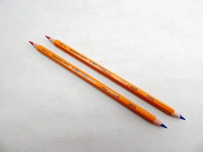 Kancelářské oboustranné dvoubarevné tužky v dřevěném plášti, šestihranné OK - 7 mm, s červeným a modrým jádrem. Balené po 12 ks do kartonové krabičky. Jsou určeny pro kancelářské a univerzální použití.