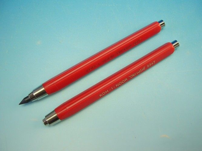 Tužka mechanická 5,6 5347. Mechanická padací tužka v kombinaci kov-plast s tuhou průměr 5,6 mm pro běžné psaní i kreslení. Tuha se posunuje stisknutím knoflíku v nakloněné poloze tužky, tím dojde k otevření kleštiny a vysunutí tuhy. Tuhu nelze hrotit, tužka nemá hrotítko. Plášť tužky je plastový trojhraný bez klipu červené barvy, mechanika kovová. Tužka je balena po 20 kusech do kartonové krabičky.