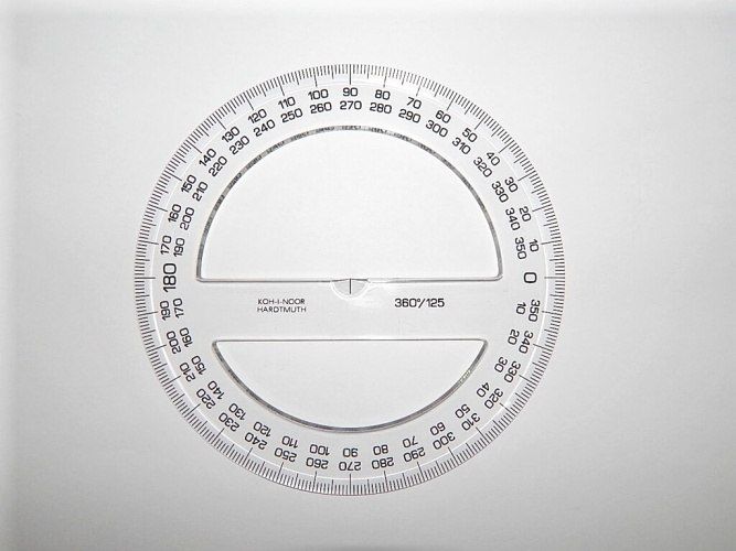 Úhloměr 360/125 746328 transparentní. Úhloměr 360/125 vyrobený z čirého průhledného polystyrenu. Dvě úhloměrné stupnice na oblouku jsou tištěny technologií přesného sítotisku. Tisk stupnic je odolný proti opotřebení při běžném používání. Úhloměr je určený k rýsování a technickému kreslení ve škole i v kanceláři. Zabalen je do polyetylenového sáčku s eurozávěsem.