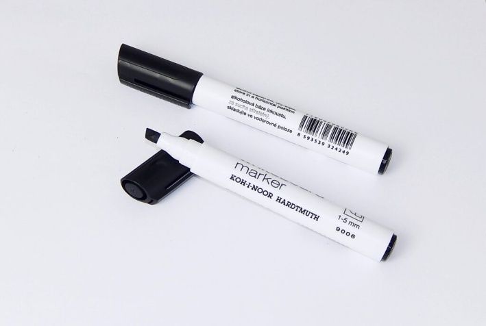 Značkovače na bílé tabule, plněné pigmentovými za sucha stíratelnými inkousty na alkoholové bázi, odstín červený, modrý, zelený, černý. Stopa písma je za sucha stíratelná. Jsou určeny pro psaní na neporézní bíle tabule ve školách a kancelářích. Při použití na papír je stopa písma světlostálá. Klínovými hroty průměru 5 mm je možné psát šířkou stopy písma 1 - 5 mm, délka 400 m. Baleny jsou v papírových krabičkách po 10 ks v jednom odstínu, v soupravách po 4 ks v plastových krabičkách nebo v 1 ks PP sáčku. Dlouhodobě je nutné skladovat ve vodorovné poloze.