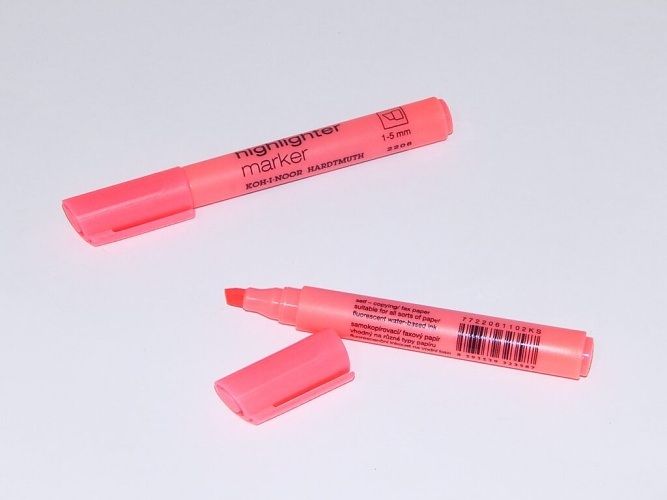Zvýrazňovače jsou plněné pestrými pigmentovými inkousty v 6 odstínech a vyrobeny z materiálů zajišťujících odolnost proti vyschnutí minimálně 3 roky. Jsou určeny pro zvýraznění textů na všech druzích papíru. Klínové hroty jsou odolné proti zatlačení, šířka stopy 1 - 5 mm, délka 400 m. Baleny jsou v papírových krabičkách po 10 ks v jednom odstínu a v soupravách po 4 ks v plastových krabičkách.