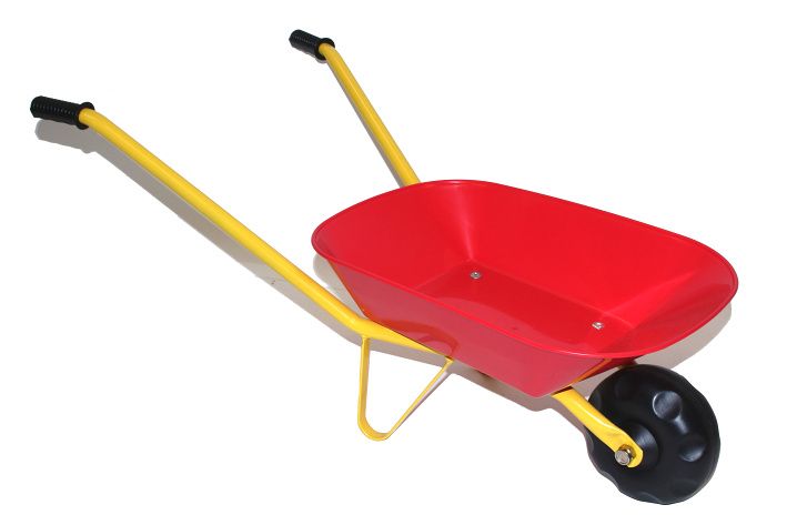 Dětské kolečko s plastovou korbičkou je věrnou zmenšenou kopií skutečného zahradního kolečka. Kolečko je lehké a je určeno pro sypké materiály a lehčí pevné materiály.