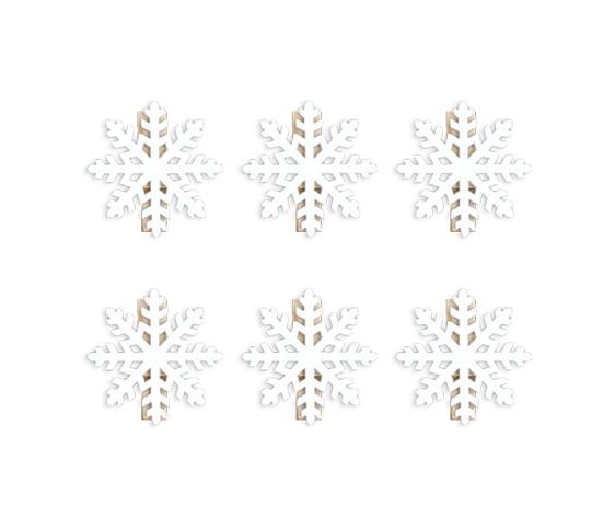 Dřevěné dekorační vločky- vhodný ke zdobení věnců, vazeb, dárků nebo přáníček- 6ks v balení- rozměr: 4cm- barva: bílá