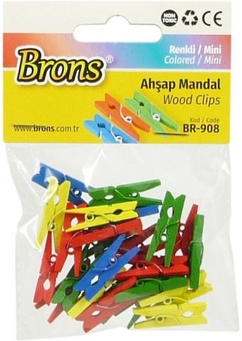 Kolíčky BR-908 dřevo 25mm 24ks mix barev