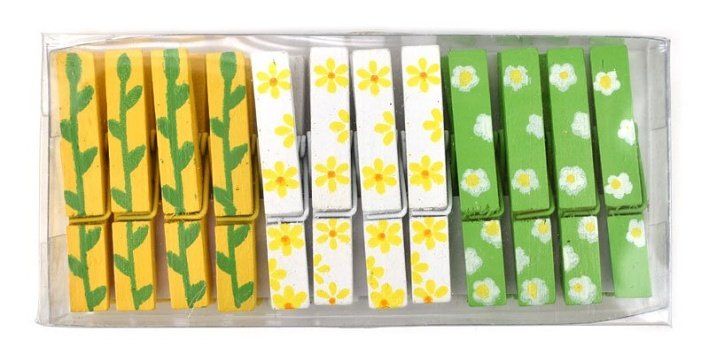Kolíčky jarní motiv, dřevo, 4,5 cm, 12 ks